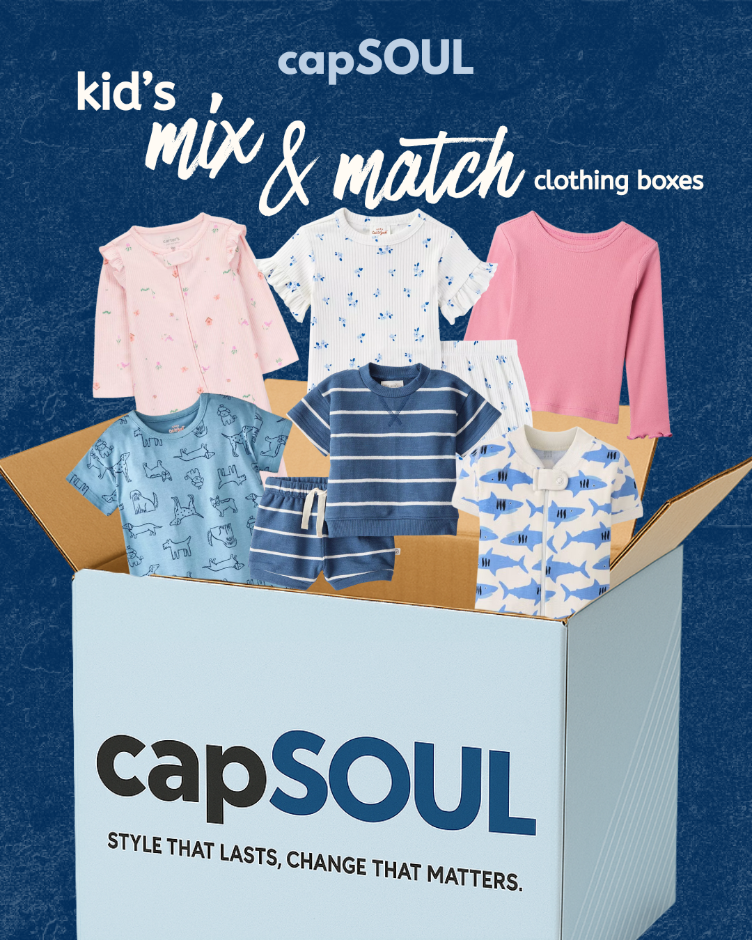 The name capSOUL blends “capsule wardrobe” with “soul”—because we’re all about helping you simplify your kid’s closet with easy, mix-and-match clothes, while putting heart into every box by donating one to a child in foster care.